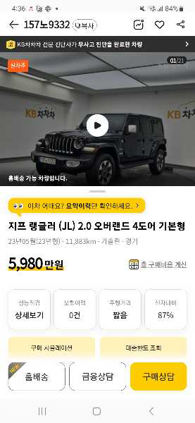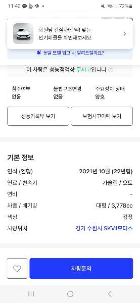 실매물 인증은 차량 실 소유자의 요청에 따라 딜러가 중개 판매 하는 경우 현재 운행 중인 차량일 수 있으며, 실매물 미인증으로 표시됩니다.